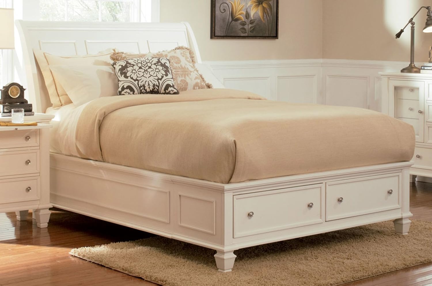 Sandy Beach Queen Sleigh Bed With Footboard Storage White Desk / Sandy Beach Black Queen Four-Piece Bedroom Set / Sandy beach queen sleigh bed with footboard storage white $804.02.. Dream of crashing ocean waves in this queen bed from the sandy beach collection. The sandy beach collection by coaster will infuse your master bedroom decor with clean lines and a classic style. Shop for sandy beach white queen sleigh bed w/ footboard storage starting at 1289.99 at our furniture store located at 16818 florida blvd., baton rouge, la 70819 Greatfurnituredeal.com provides high quality furniture at the lowest internet prices! Ships from and sold by amazon.com.