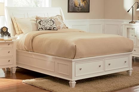 The collection includes a variety of bedroom pieces, with different bed options and plentiful storage to meet your needs. Crafted from maple veneers in a white finish, this queen bed features two storage drawers at the foot of the bed. Crafted from maple veneers in a white finish, this queen bed featu. Sandy beach white queen sleigh bed with footboard storage coaster. Crafted from maple veneers in a black finish, this queen bed features two storage drawers at the foot of the bed.